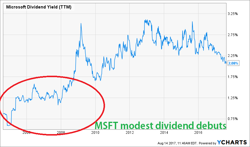 As far as my first principle goes, we can’t tell AAPL has a high dividend yield! This is probably what an income seeking investor will tell you if you asked about their opinion on this stock. Unfortunately, a 1.50%-2% yield doesn’t attract the dividend-growth crowd. After all, don’t forget that MSFT started just like that: