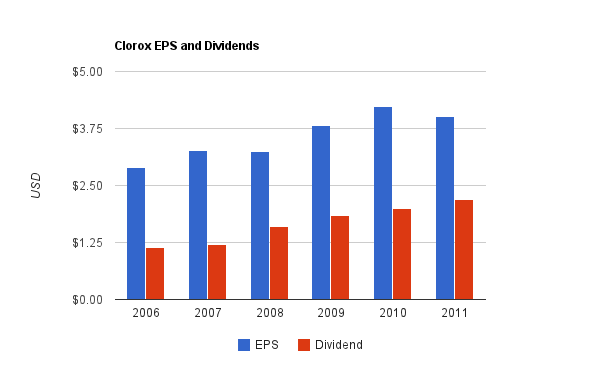 During 2009, 2010, and 2011, Clorox generated about $1.6 billion in free cash flows. Around $840 million was paid out in dividends over this period, and another $670 million was used to reduce the number of shares outstanding (value of shares repurchased minus value of shares issued). The company generated another $730 million or so from divestitures, and paid back around $840 more in debt than it issued.