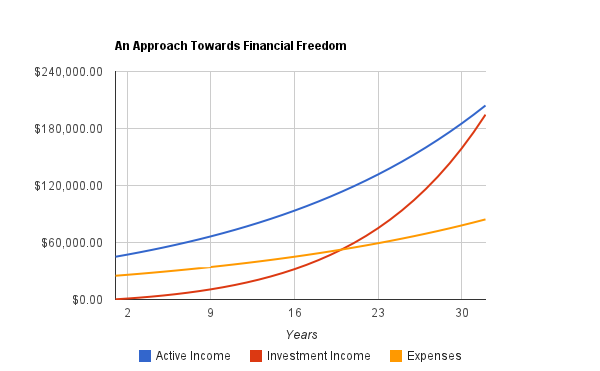 When your passive dividend income combined with interest income and other types of passive income exceeds your expenses, you’re financially free. After that, all active income is optional, so you can focus on doing what you want to do, and work on what you want to work on.