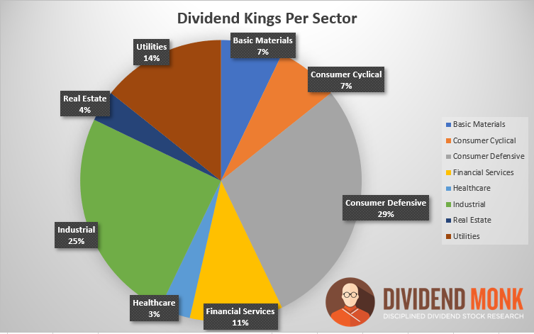 As of 2020, we count 28 Dividend Kings, all of which are trading on the U.S. stock market. Please note some Kings aren’t part of the Dividend Aristocrats list since the Aristocrat list includes only companies trading on the S&P 500.