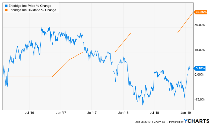 Nonetheless, some additional risks or investor concerns could pop into the picture and make the stock price lag while management remains confident in their plan. One of the best examples I could find was Enbridge (ENB.TO or ENB).