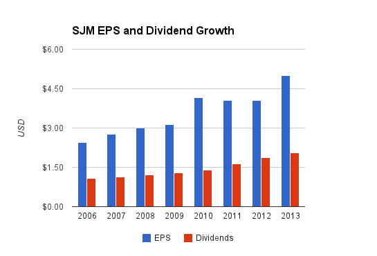As can be seen by the chart, except for certain points of volatility, Smuckers stock has maintained a fairly consistent mediocre dividend yield. The price of the stock has risen at almost exactly the same rate as the dividend growth.