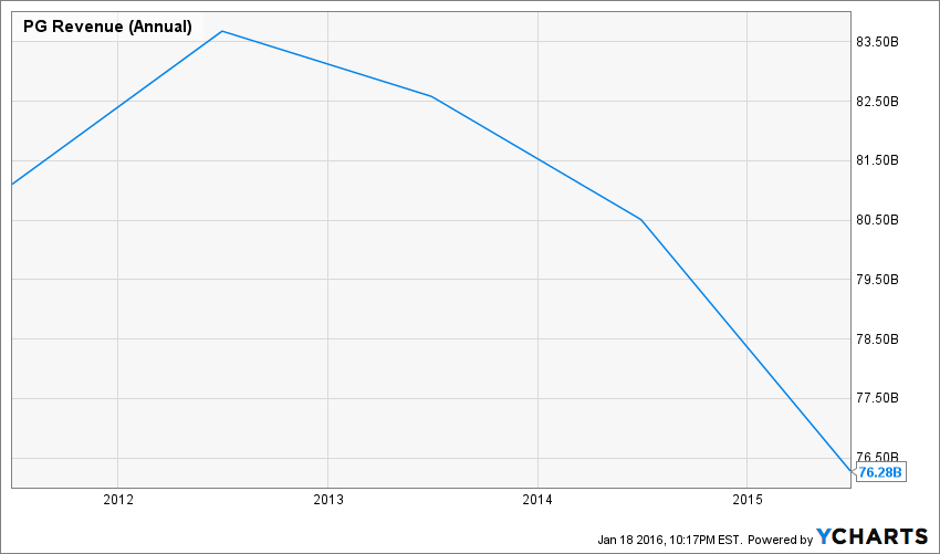 Changing major brand management is being done without hurting results. The company shows lower revenue volumes over the past three years for two good reasons: #1) PG is exiting underperforming brands. While this has a positive effect on profitability, the gross sales numbers are down. #2) the company makes 41% of their sales in North America, the rest of their sales are in foreign currencies. The currency impact on the September 30th closing quarter was -9% and ***** on December 31st closing quarter.