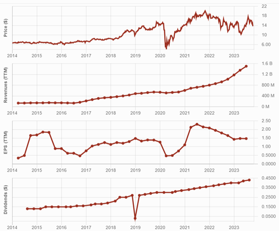 MAIN pays a monthly dividend providing an ~7% yield and has paid a special dividend annually to sweeten the deal for its investors. MAIN skipped the special dividend for a few years following the Covid crash but paid one in 2023. This business development company (BDC) is among the most respected and well-run in its industry. The company has never failed shareholders and demonstrates a meticulous underwriting process to avoid bad loans.