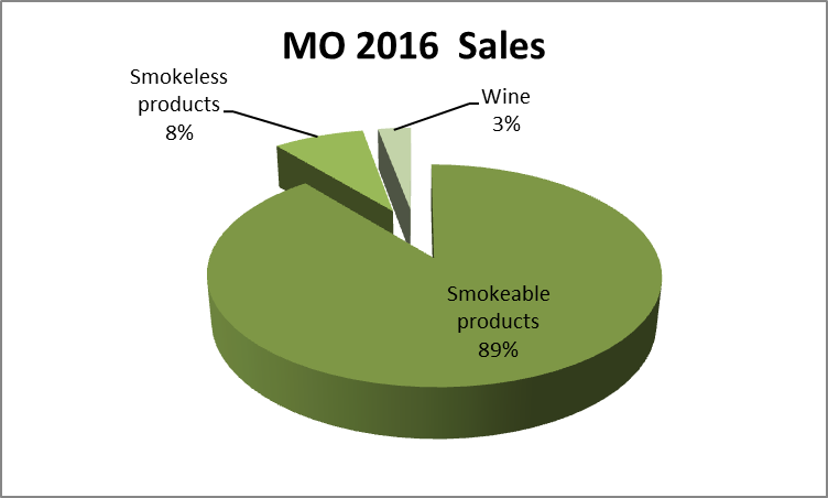However, since the number of American cigarette consumers is decreasing, MO has been working on diversification. Their efforts resume into acquiring 10% of BUD, creating e-vapor brands and operating Ste. Michelle Wine Estates, their smallest but also fastest growing business segment.