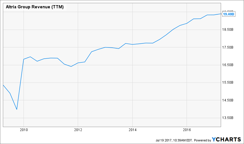 Since the spin-off, Altria is showing consistent growing revenues. The company benefits from strong pricing power to support this growth. Unfortunately, the reality will hit Altria sooner or later: