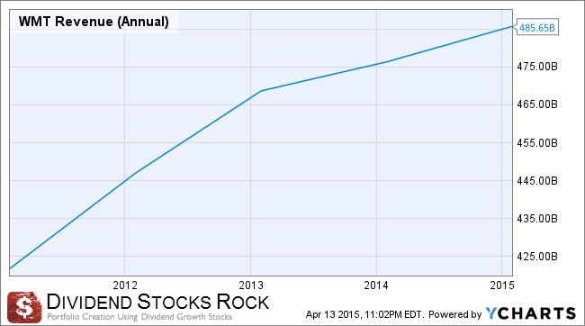 Walmart, that’s 11,462 stores (as at February 2015), 71 banners, presence in 27 countries and over 2.2 million employees (1.3 million in the US alone). Did the title mention WMT was a giant? Let’s dig further to see what else we can find…